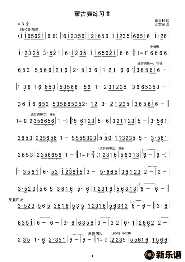 演唱的蒙古舞练习曲歌词,蒙古舞练习曲简谱.