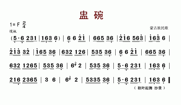 演唱的盅碗(蒙古舞练习曲)歌词,盅碗(蒙古舞练习曲)简谱.
