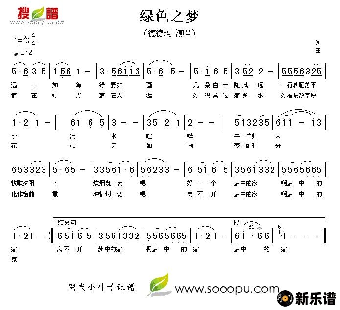 《绿色之梦》简谱 德德玛-小叶子制谱