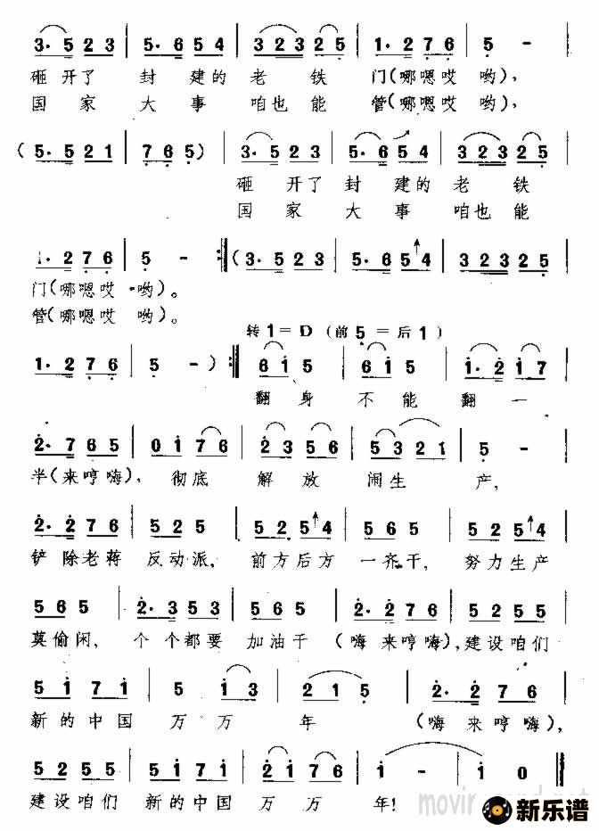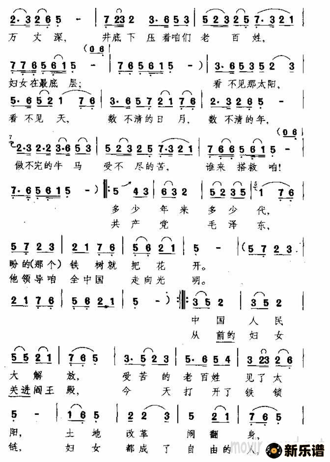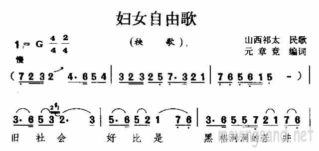 山西民歌演唱的妇女自由歌歌词,妇女自由歌简谱.