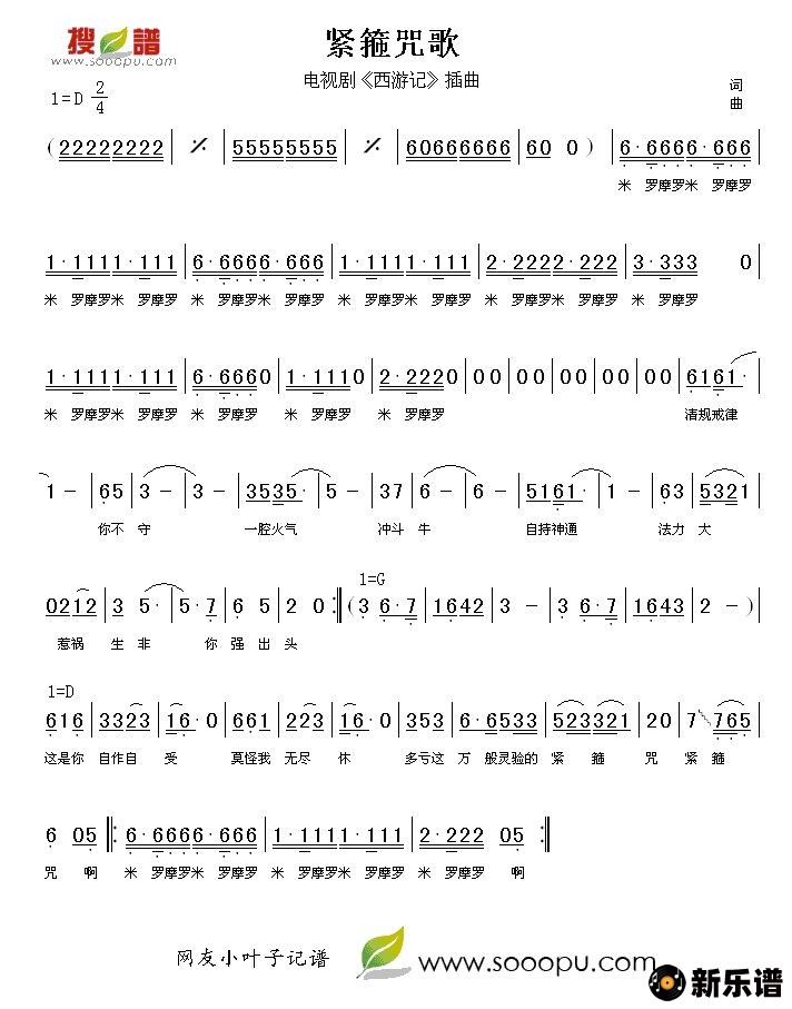 演唱的紧箍咒歌歌词,紧箍咒歌简谱.