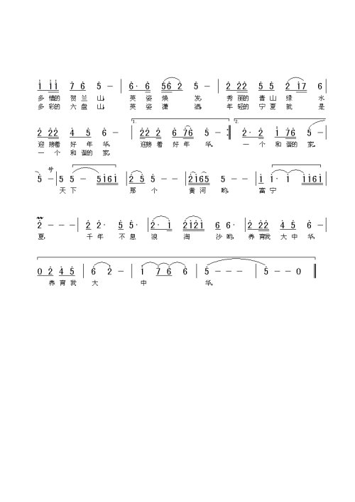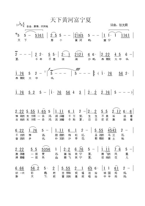 > 天下黄河富宁夏简谱