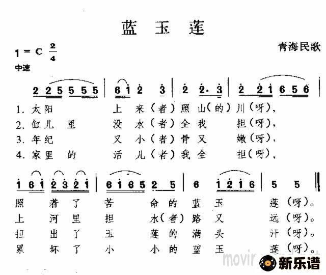 演唱的蓝玉莲 青海民歌歌词,蓝玉莲 青海民歌简谱.