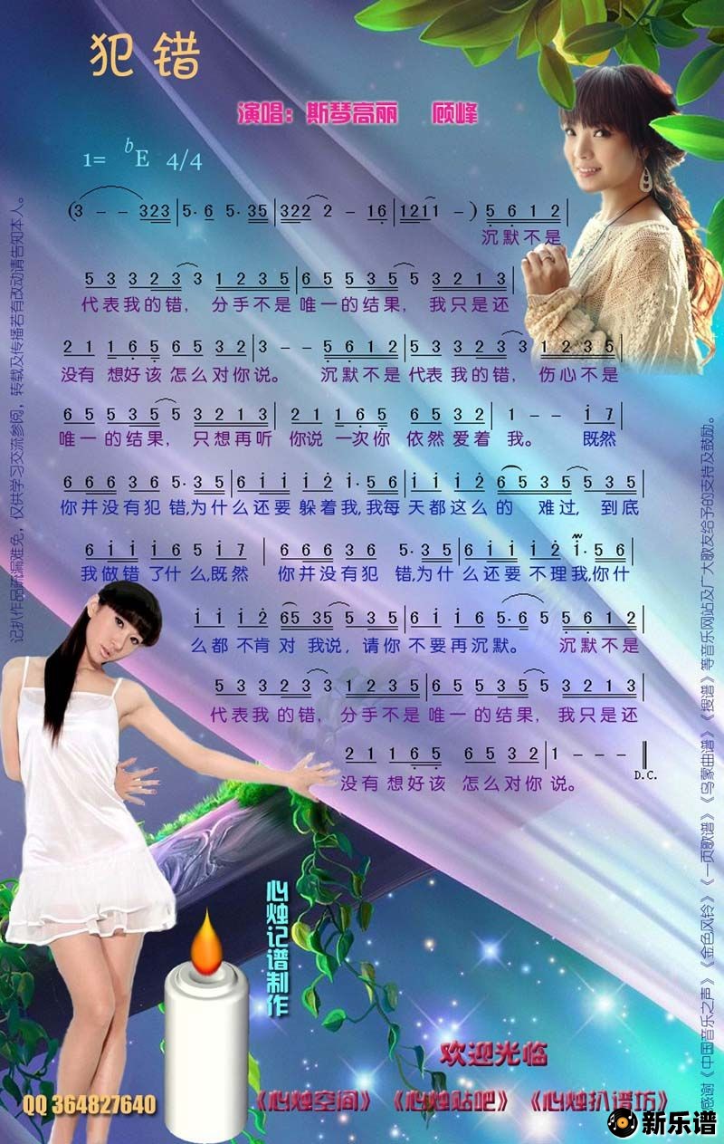 《犯错》简谱 斯琴高丽/顾峰-心烛制谱