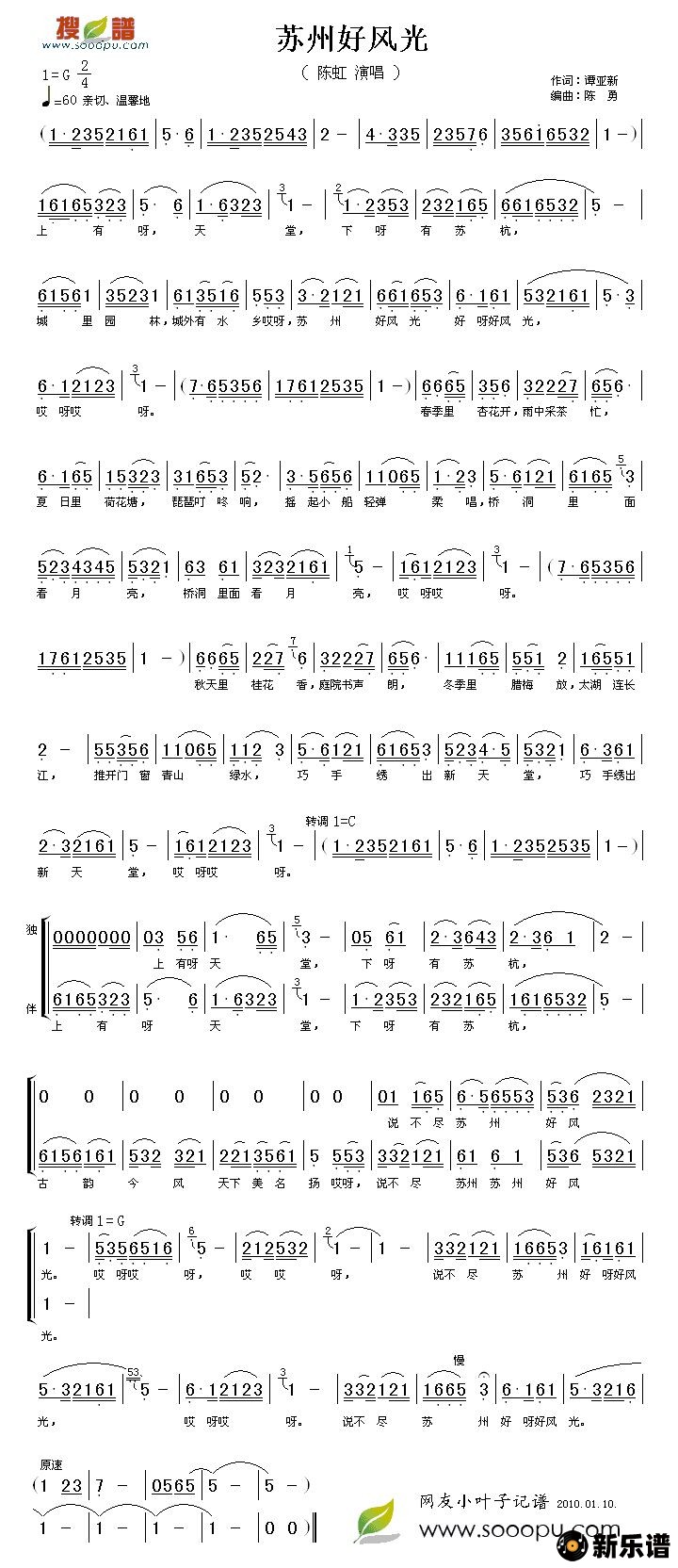 《苏州好风光》简谱 陈虹-小叶子制谱
