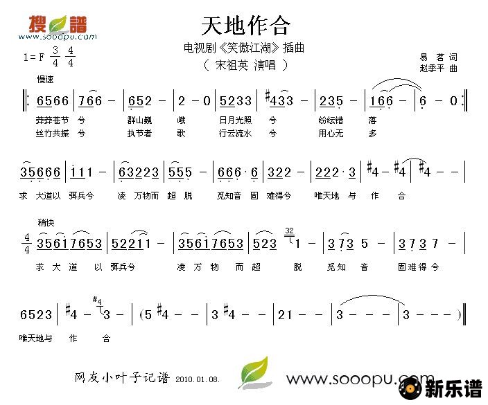 宋祖英演唱的天地作合歌词,天地作合简谱.