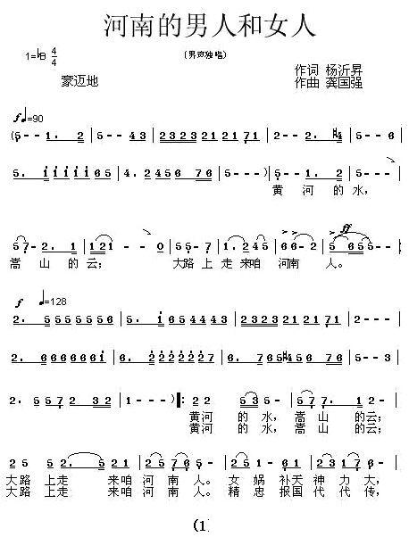 > 河南的男人和女人简谱