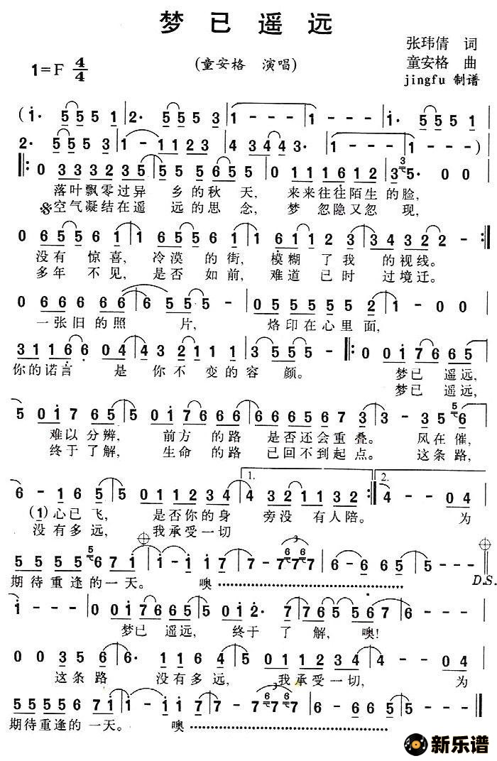 童安格演唱的梦已遥远歌词,梦已遥远简谱.