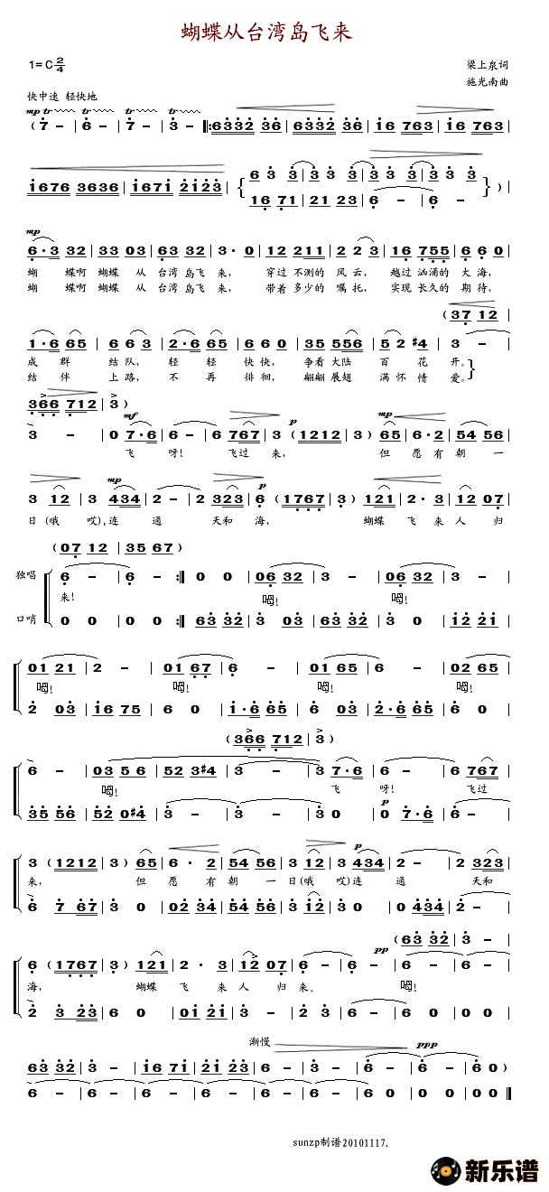 关牧村演唱的蝴蝶从台湾岛飞来歌词,蝴蝶从台湾岛飞来简谱.