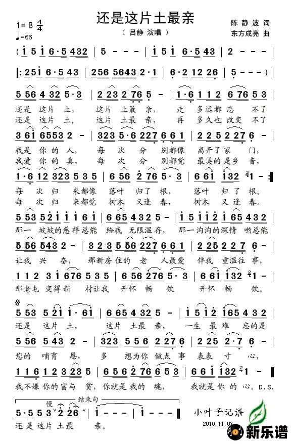 《还是这片土最亲》简谱 吕静-小叶子制谱