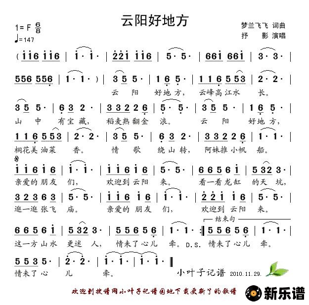 抒影演唱的云阳好地方歌词,云阳好地方简谱.