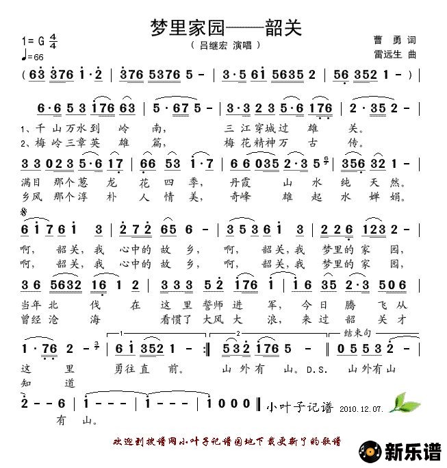 《梦里家园——韶关》简谱 吕继宏-小叶子制谱