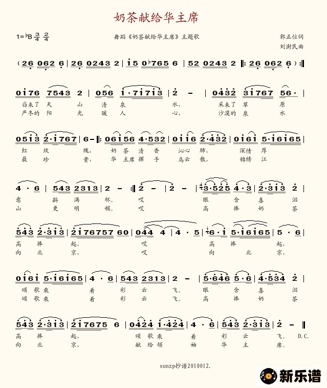 奶茶献给华主席/新疆部队文工团 加米拉领唱 相关曲谱
