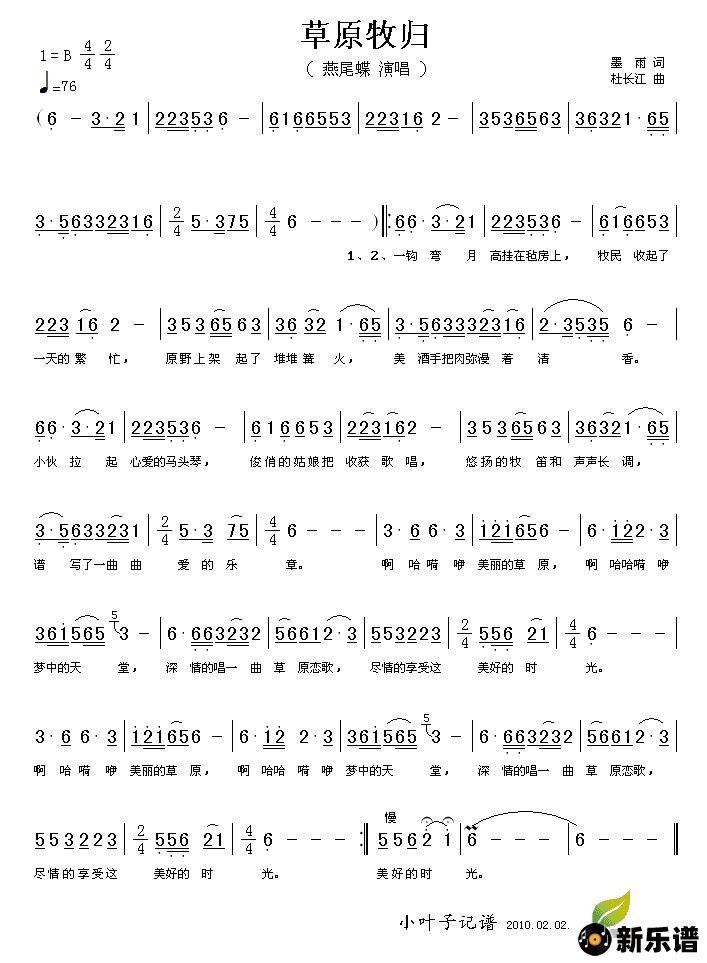 《草原牧归》简谱 燕尾蝶-小叶子制谱