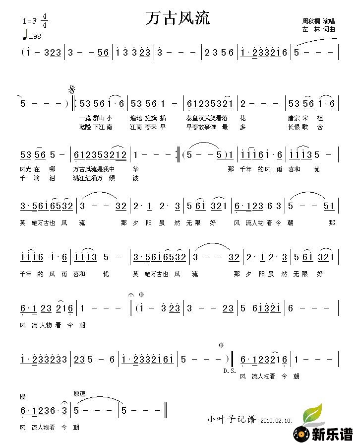 周秋桐演唱的万古风流歌词,万古风流简谱.