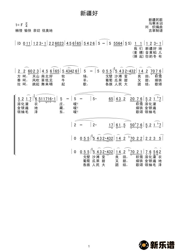 演唱的新疆好(合唱)歌词,新疆好(合唱)简谱.