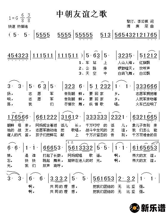 演唱的中朝友谊之歌歌词,中朝友谊之歌简谱.