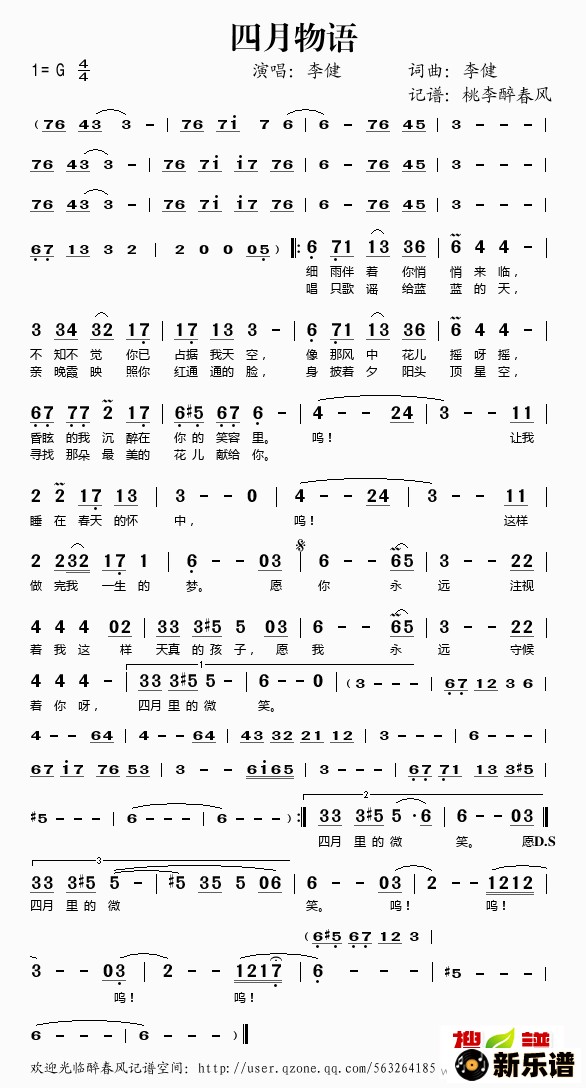 李健演唱的四月物语歌词,四月物语简谱.