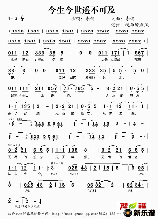 今生今世遥不可及/李健 相关曲谱