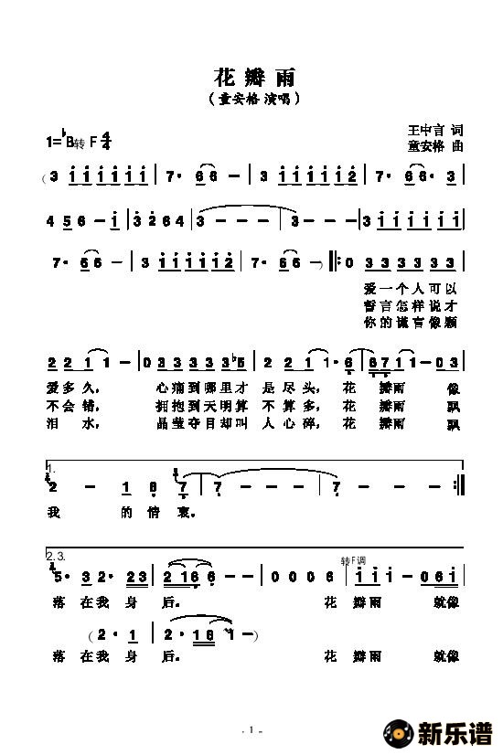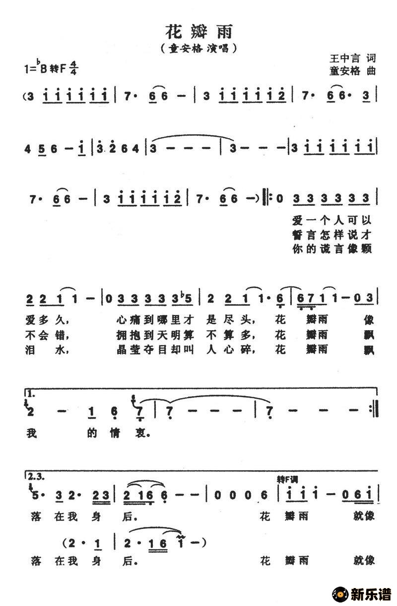 童安格演唱的花瓣雨歌词,花瓣雨简谱.