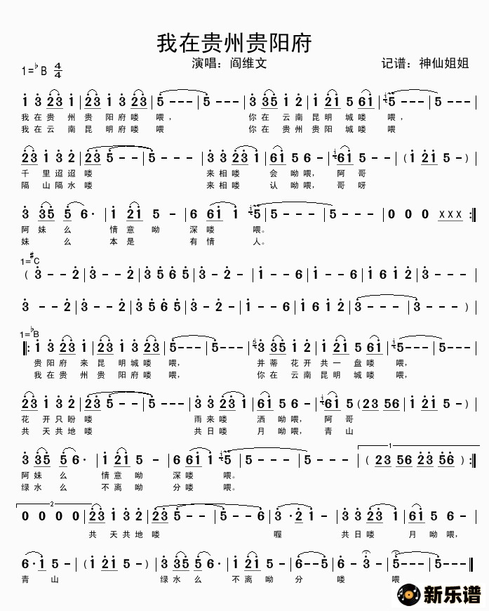 阎维文演唱的我在贵州贵阳府歌词,我在贵州贵阳府简谱.