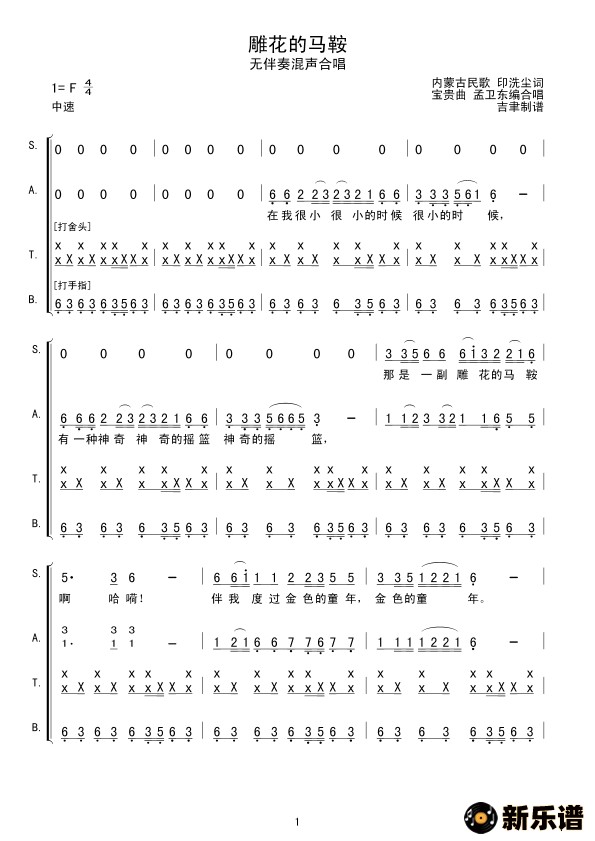 雕花的马鞍(内蒙古族)/ 相关曲谱