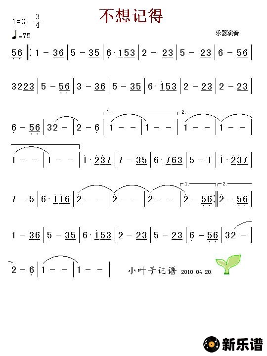 《不想记得》简谱 乐器演奏-小叶子制谱