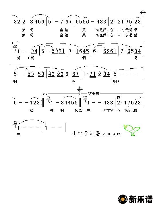 《永远的金达莱》简谱 任香淑-小叶子制谱