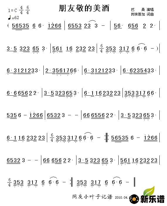 《朋友敬的美酒》简谱 巴桑-小叶子制谱