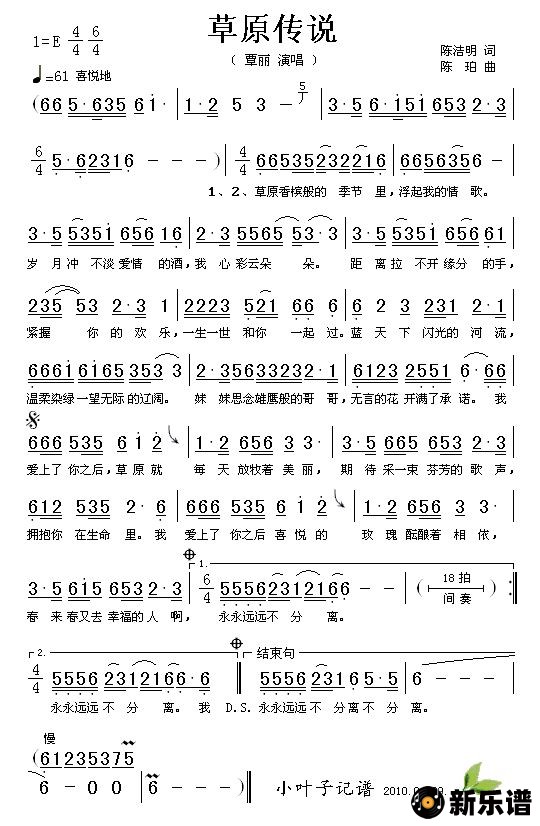 覃丽演唱的草原传说歌词,草原传说简谱.