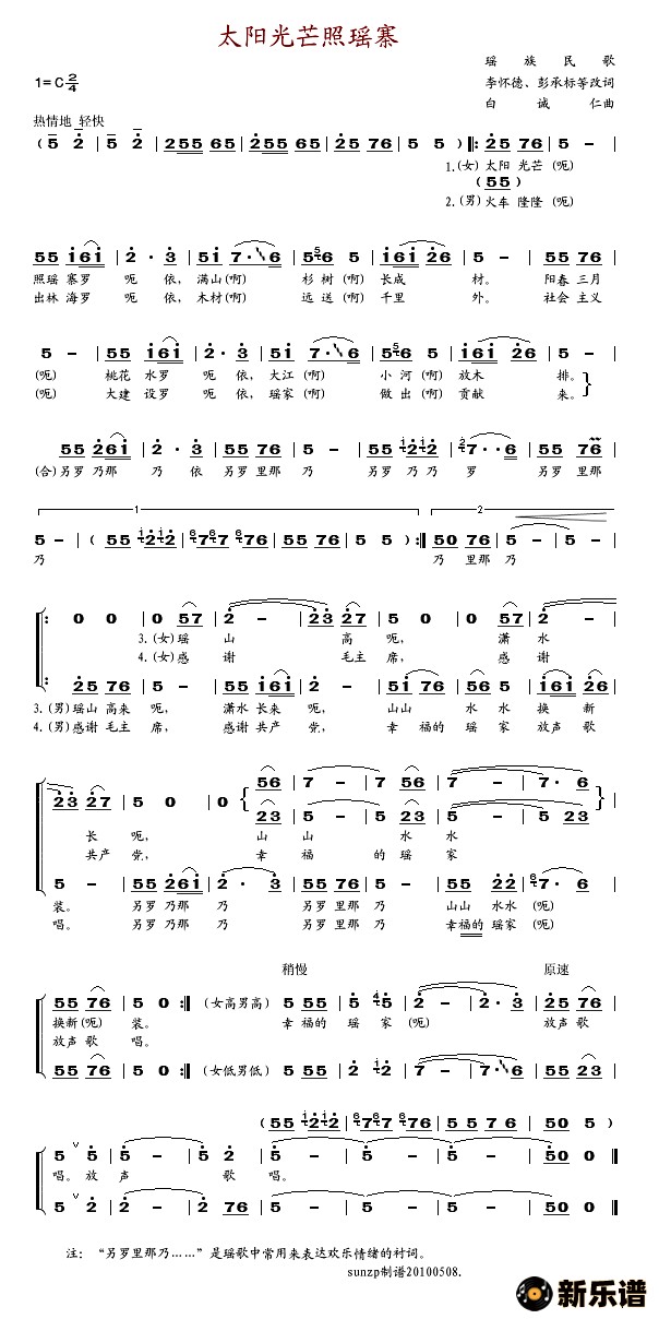 湖南省歌舞团演唱的太阳光芒照瑶寨歌词,太阳光芒照瑶寨简谱.