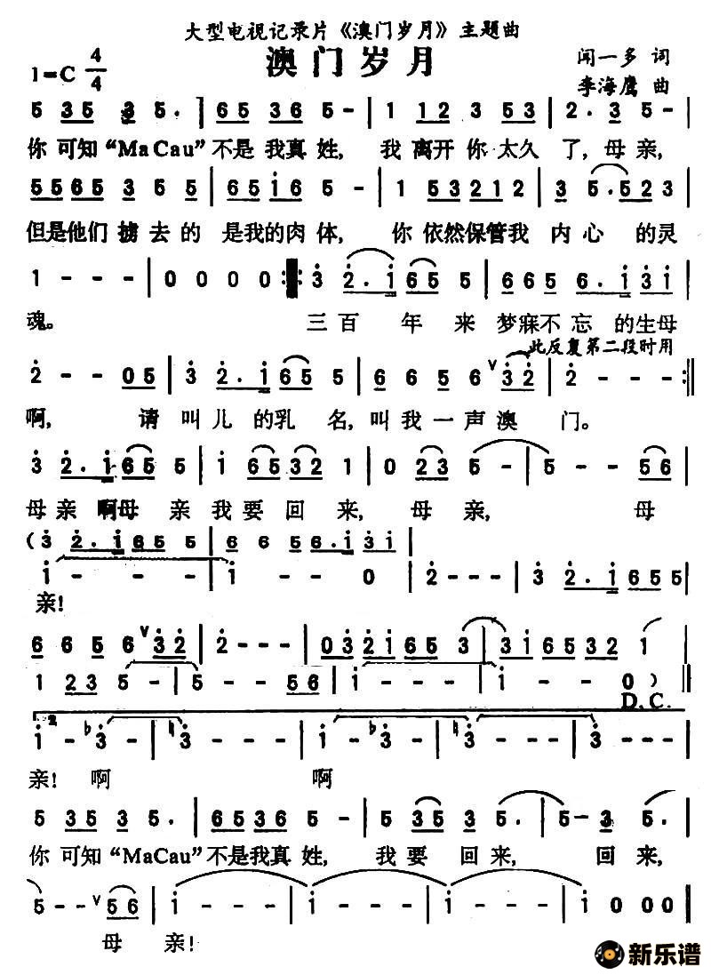 演唱的澳门岁月歌词,澳门岁月简谱.