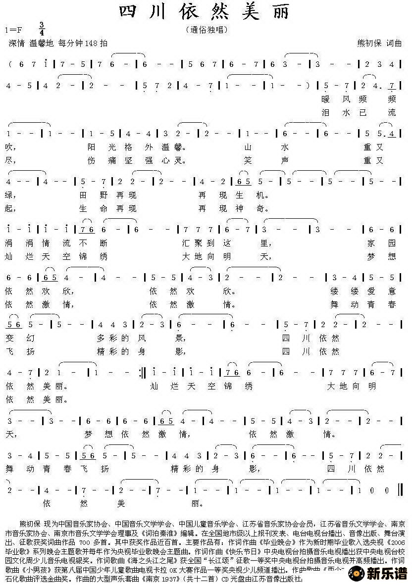 演唱的四川依然美丽(熊初保词曲)歌词,四川依然美丽(熊初保词曲)简谱.