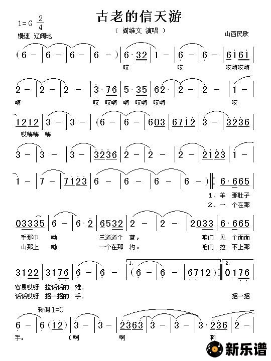阎维文演唱的古老的信天游歌词,古老的信天游简谱.