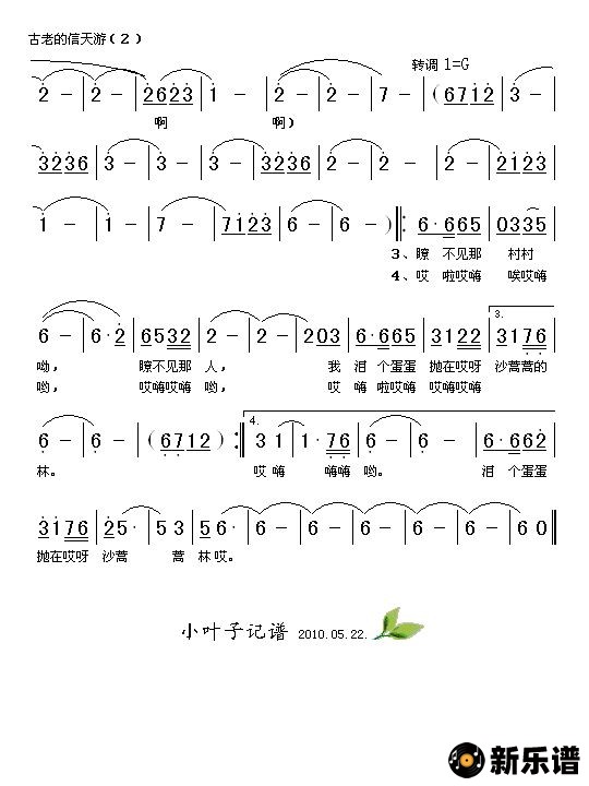 《古老的信天游》简谱 阎维文-小叶子制谱