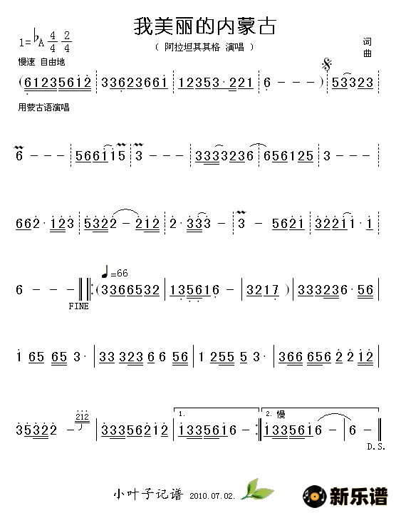 阿拉坦齐齐格演唱的我美丽的内蒙古歌词,我美丽的内蒙古简谱.