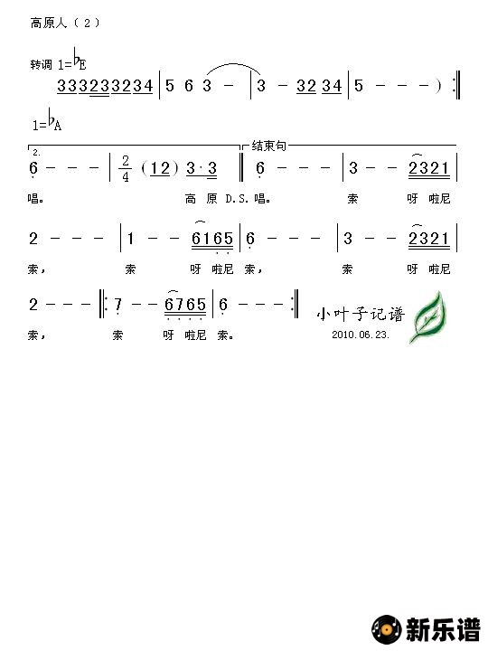 > 高原人简谱