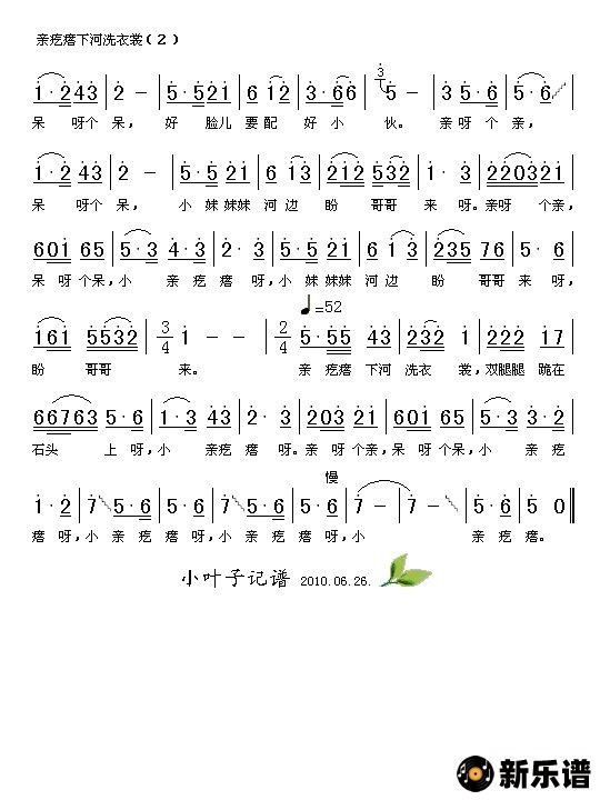 《亲疙瘩下河洗衣裳》简谱 尉金莹-小叶子制谱