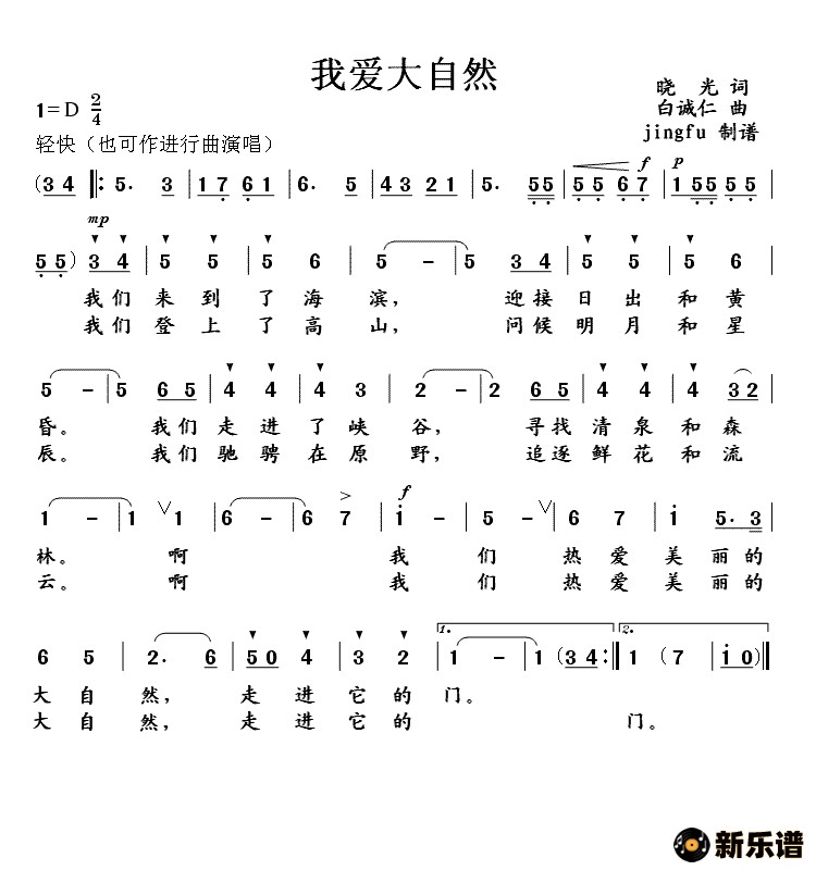 《我爱大自然(征歌获奖作品)》简谱 湖南广播电视文工团 长沙市、株洲市歌剧团