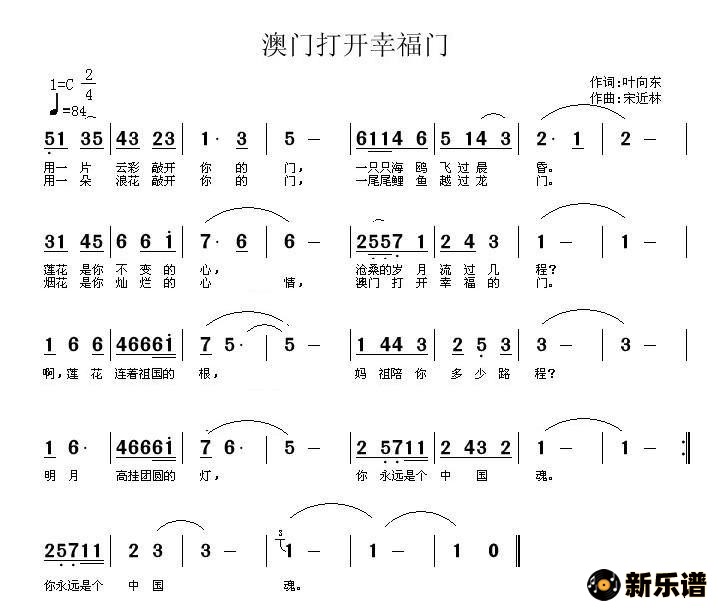 演唱的澳门打开幸福门歌词,澳门打开幸福门简谱.