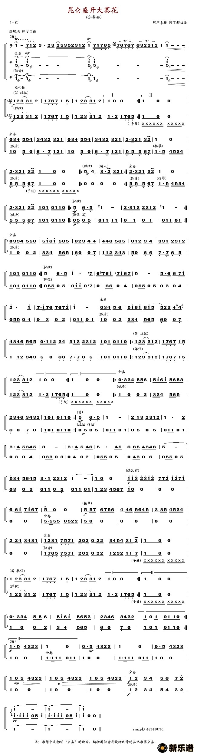 《昆仑盛开大寨花(合奏曲)》简谱 新疆歌舞团