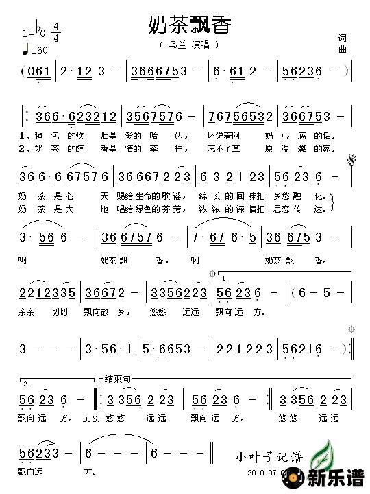 《奶茶飘香》简谱 乌兰-小叶子制谱