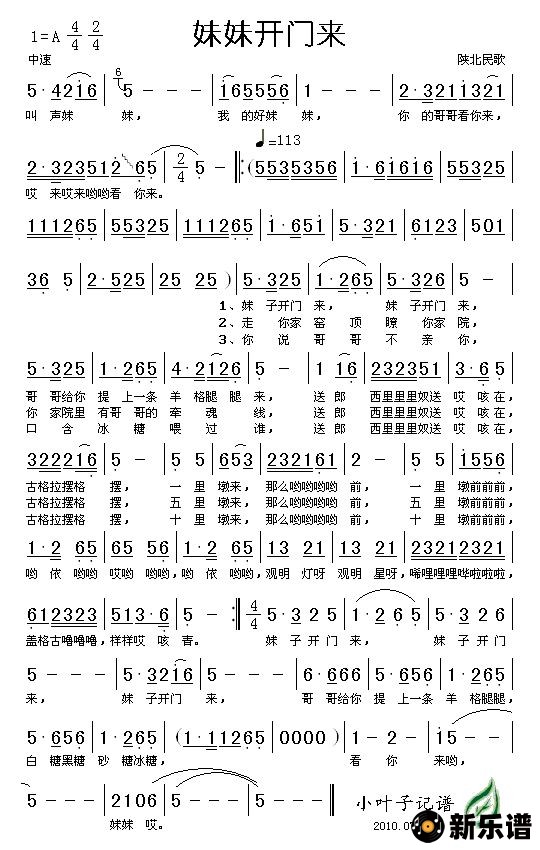 演唱的妹妹开门来歌词,妹妹开门来简谱.