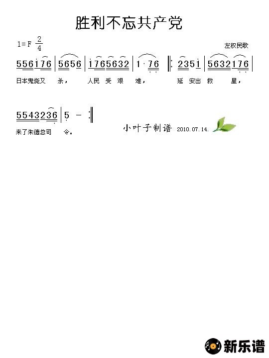 《胜利不忘共产党》简谱 左权民歌-小叶子制谱