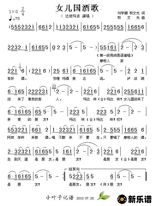 《女儿国酒歌》简谱 达坡玛吉-小叶子制谱