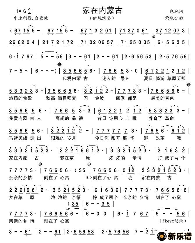 伊妮演唱的家在内蒙古歌词,家在内蒙古简谱.