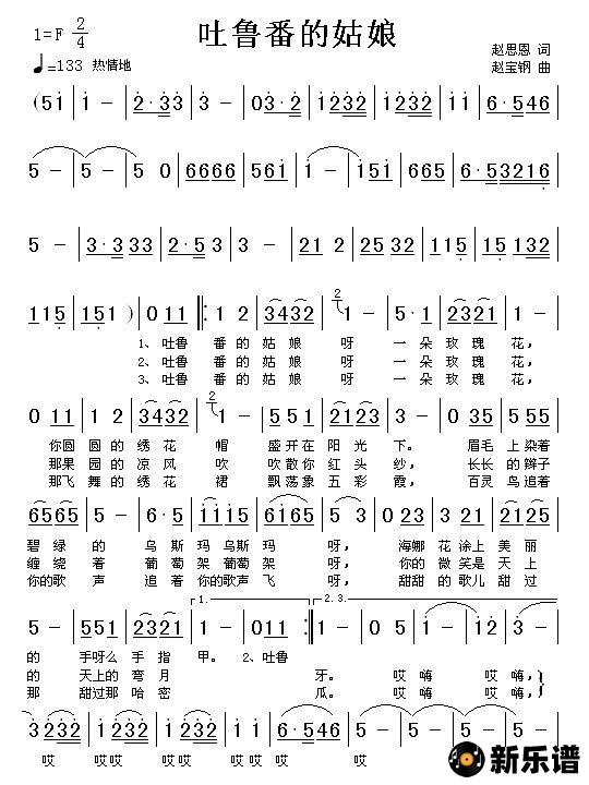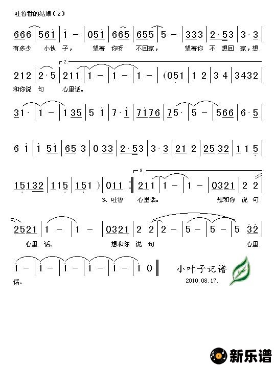 《吐鲁番的姑娘》简谱 -小叶子制谱