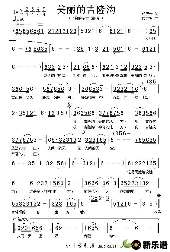 《美丽的吉隆沟》简谱 泽旺多吉-小叶子制谱