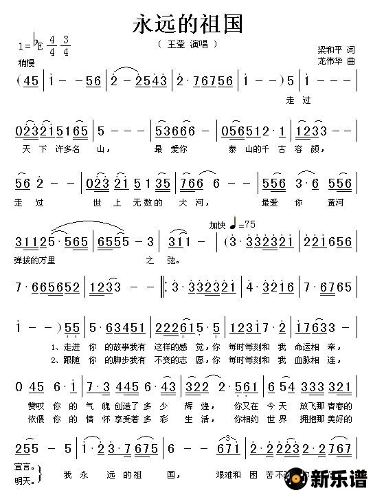 王莹演唱的永远的祖国歌词,永远的祖国简谱.