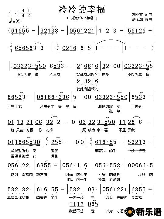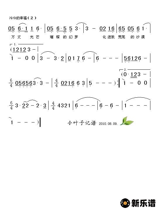 《冷冷的幸福》简谱 邓妙华-小叶子制谱